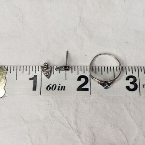 Silver Navajo pinky ring with Southwestern style pointed diamond teardrop shaped turquoise centre & matching tiny crushed turquoise silver arrowhead stud earrings.