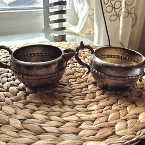 Enhance your dining experience with this elegant silver creamer and sugar bowl set. Perfect for adding a touch of sophistication to your table.