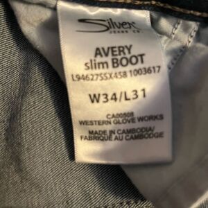 Silver Avery Slim Boot Waist 34” Length 31” Rise 9” EUC
