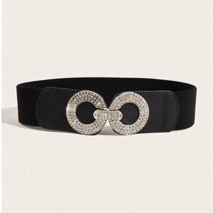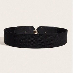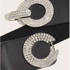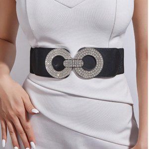 SIZE CHART IN PHOTOS Black Symmetrical Buckle Wide Belt Stretch Width 2.4" 50% Polyurethane, 40% Polyester, 10% Spandex