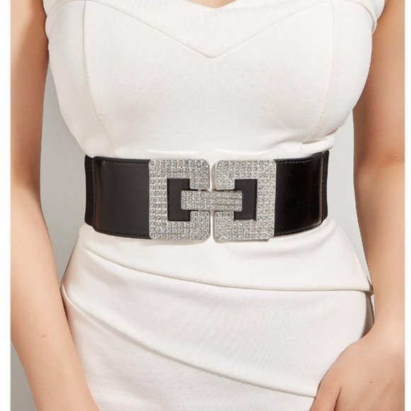 Silver/Black Square Rhinestone Stretch Belt