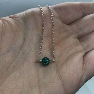 💛 Silver & Green Stone Choker Necklace
