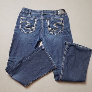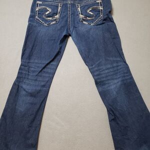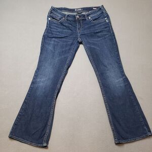 Silver Jeans Aiko Mid Boot Womens 32 Dark Wash Blue Denim Stretch Bootcut
