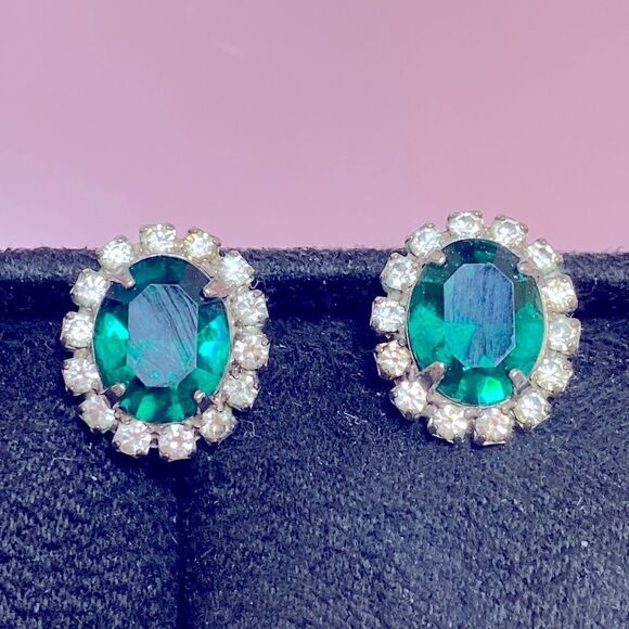 Stunning vintage emerald green crystal earrings in excellent condition. They are so sparkly and bright.