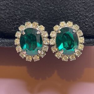 💛 Silver Tone Emerald Green & White Crystal Earrings