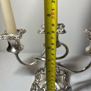 Enhance your home decor with this elegant silver candelabra. Its classic design adds a touch of sophistication and interest to any room.