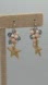 Elegant earrings with starfish charms. Features pink, gray, and cream beads. Perfect for a beach-inspired look.