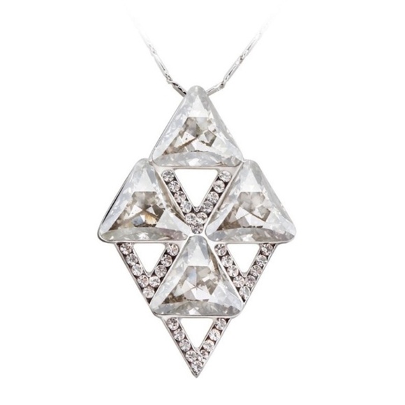 Silvertone Geometric Pendant Necklace with Swarovski Crystals