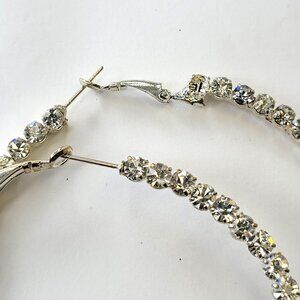Silvertone Hoops with encrusted crystals Silver tone Statement Big Hoops