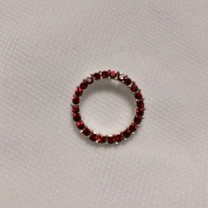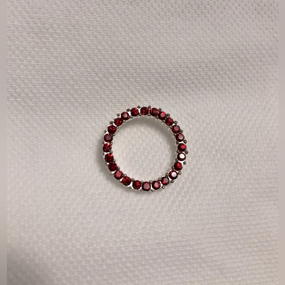 Red Rhinestone pendant in silvertone. Circumference is 0.75 inch. New.