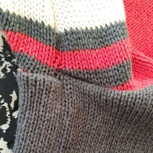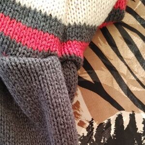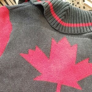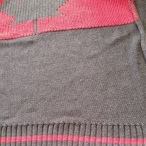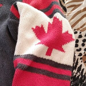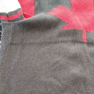 Excellent condition new or like new. Cozy and stylish cardigan sweater in gray, white and red. Perfect for keeping warm and fashionable. There is a line the whole back width of the shirt under (and above ) the maple leaf it is the line that shows from the addition of the red on the inside as you will see in the last three pictures. 100% cotton. PTP 21, length 24, sleeve 25, bottom 19. Would fit medium as well.