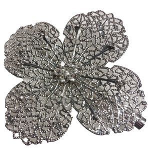 Metal silvery coloured hair clip with rhinestone details. In excellent pre-owned condition.