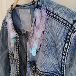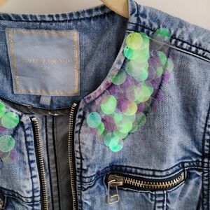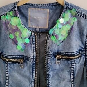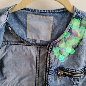 Silvian Heach Sequined Collarless Denim Jacket XS
