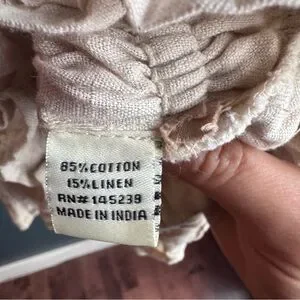 Sim & Sam ivory linen and cotton blend crop top. Waist is smocked and can stretch up to 18”.