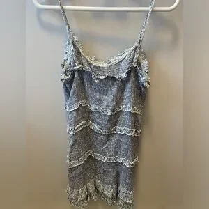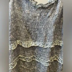 Feminine dress with pretty floral pattern, sweet ruffles, and adjustable straps. Smocking for flexible fit. Ptp is 15.5” with stretch to 17”. Pit to hem is 24”. 100% rayon, made in India.