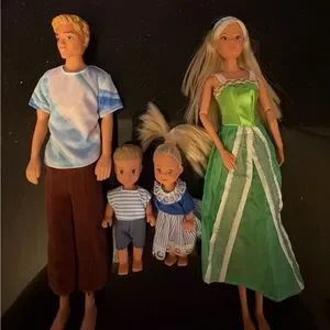 Explore imaginative play with this stylish fashion doll family set. Featuring a beautifully dressed doll in a green gown, this set is perfect for creative storytelling. Ideal for kids who love fashion and fun. Sorry no shoes.