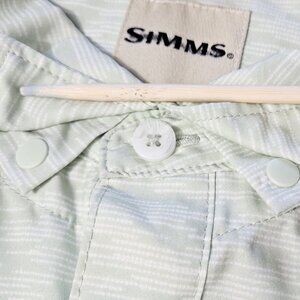 Simms Double Haul Fishing Shirt Men L Light Green Texture Wave Pockets Stretch