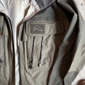 Like new, worn maybe twice. Durable, breathable, and comfortable GORE-TEX® Shell 3-layer through the body with GORE-TEX® stretch panels strategically placed to move with every dynamic cast. The fabric feels tough to protect from the rain and durable to hold up to any weather mother nature tosses at you