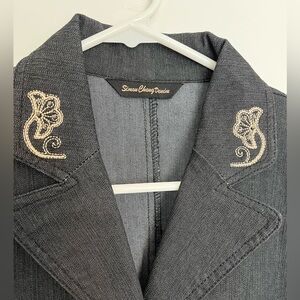 Simon Chang Stylish black denim jacket with elegant embroidery. Perfect for adding a touch of sophistication to any outfit. Comes with additional beads size 8 NWT.