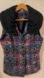 Multicolor vest with geometric pattern. Features black trim. Stylish and unique design.