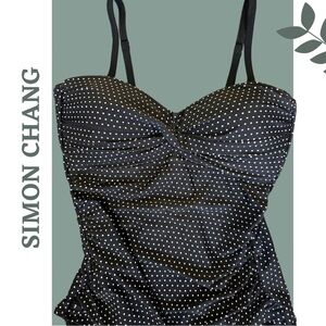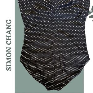 Simon Chang Solutions black and white polka dot one piece swimsuit in excellent condition