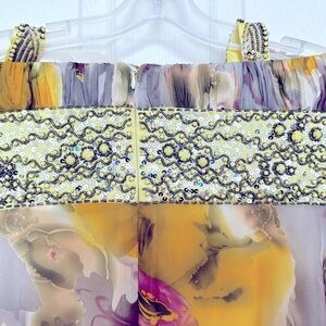 Simon Chang Yellow and Purple Sequin Halter Mini Dress