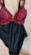Simon Chang red black cobra snake hardware accent one piece swimsuit Sz 8