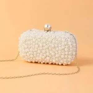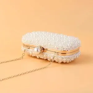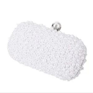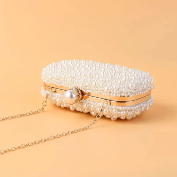 The entire evening bag is covered with pearls on both the front and back, which is very elegant and feminine.