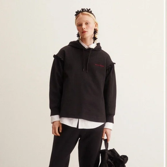 Simone Rocha x H&M black hoodie with frilly shoulder detail and a relaxed fit. Super cute, just haven’t been reaching for it. Worn maybe 5 times, excellent condition.