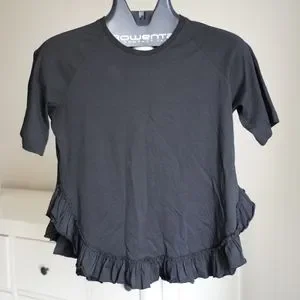 Elegant black top with stylish ruffle details. Perfect for any occasion.