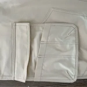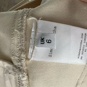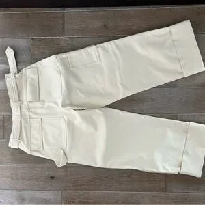Beautiful and original style! Cream carpenter pants, made of structural double woven cotton that keeps its shape. Large pockets and turned up hem. Actual measurements: waist 15”, hip 22”, rise 13.5”, inseam: 24”, total length: 36”Size 6 UK (2 US). Brand new, never worn, without tags.