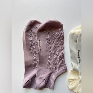 Chic floral socks in lavender and cream. Delicate embroidery adds elegance.