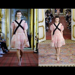 Opening look from Simone Rocha SS16 ready-to-wear runway show at Lancaster House, inspired by the cherry blossoms of Kyoto and fallen samurai, and infused with the whimsical girlishness that underpins much of Rocha's work