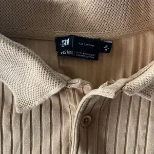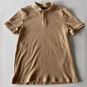 Elegant beige ribbed polo with a classic collar. Ideal for everyday style. Size M.