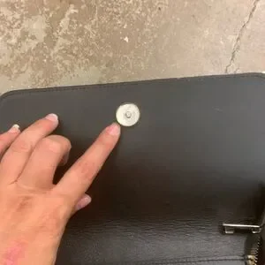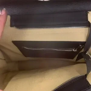 Elegant black leather bag. Features secure zipper closure. Made in Italy. 15 x 15’ Magnetic closure is damaged however the zipper does work