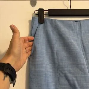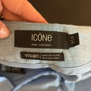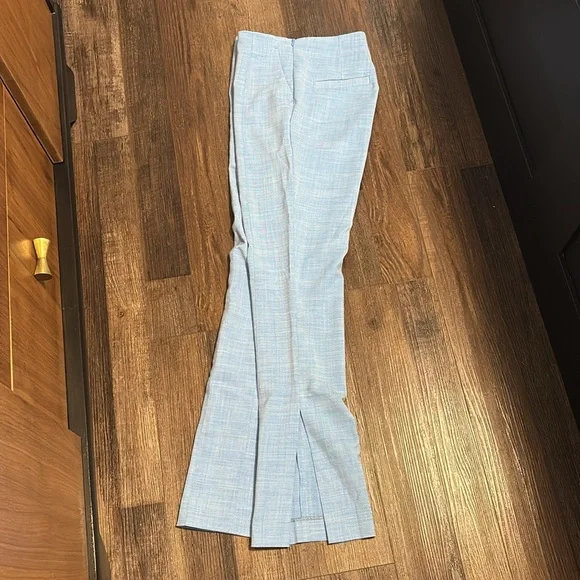 These Simons pants feature a stylish boot cut and flare design in a chic blue hue. High waist with side pockets. Crafted from a lightweight fabric, they offer a high-waisted fit with a subtle retro flair. Perfect for versatile styling, these pants bring a modern touch to any wardrobe. Only wear ones and in perfect condition. Last picture is to show a exemple of the fit.