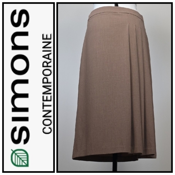 Simons Contemporaine skirt, Simons midi skirt, brown pleated skirt, neutral taupe skirt, workwear skirt Simons, Simons office wear, midi skirt size small, pleated detail skirt, Simons classic skirt, Canadian fashion Simons, versatile brown skirt, minimalist neutral skirt, elegant mid-length skirt, women’s brown skirt S, flowy midi skirt