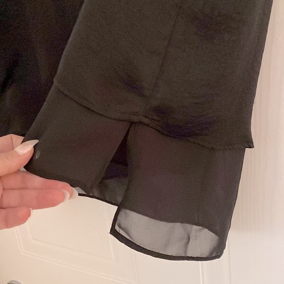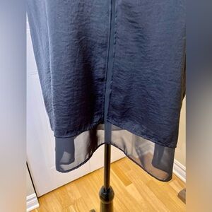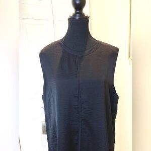 Simons Contemporaine black silky sleeveless asymmetric tunic w/ btm hem in sheer layers. 🖤