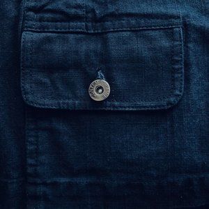 Simon's Contemporaine dark indigo short denim jacket, in a sort of painter's style. Has a boho feel while also stylish and chic, thus versatile. Color is dark indigo, and several of the photos (back, collar and sleeve) appear lighter. In subdued lighting, the jacket will present as black. Medium size. Shoulder to waist 24 inches. Message for additional measurements if needed.