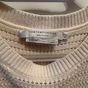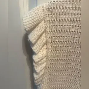 Textured knit tank with delicate ruffle cap sleeves. Soft cream tone and breathable weave. Easy to style for casual or dressed-up looks.