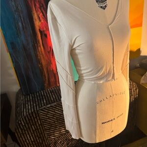 Elegant cream top with long sleeves. Features a flattering V-neckline. Perfect for any occasion.