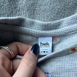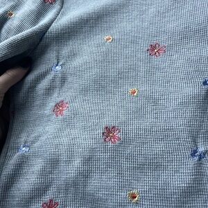 Twik at Simon’s: Gray Waffle Fabric Long-sleeved Top with Colourful Floral Embroidery