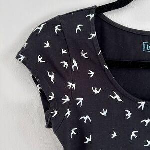 Simons Fit and Flare Sundress Black Bird Pattern Cap Sleeve Scoop Neck Size S