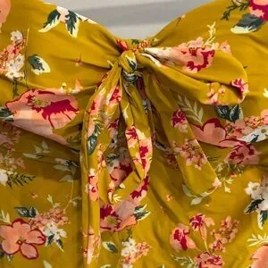 Chic one-piece swimsuit with floral design. Features a front bow accent.