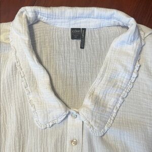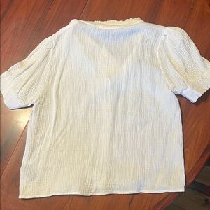 Chic white blouse, organic cotton . Features a stylish collar and button-up front. Worn once, near perfect condition.