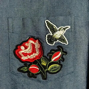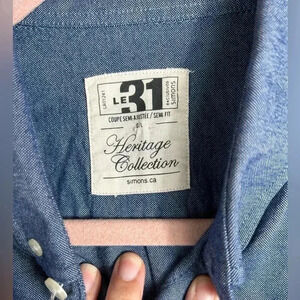 Le 31 by Simons Heritage Collection cotton button-down shirt with gorgeous embroidery detail of a hummingbird & flower on chest pocket. Relaxed fit throughout. Very soft shirt, very well tailored, excellent condition!