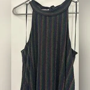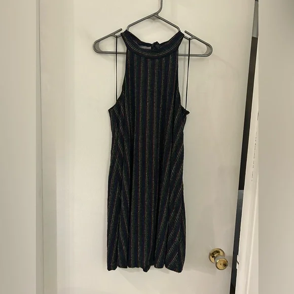 Chic backless dress with vibrant stripes. Ideal for stylish outings. Worn once