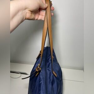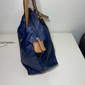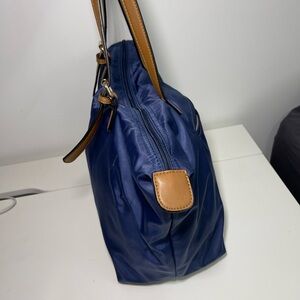 Simon’s Navy Medium Size Nylon Faux Leather shoulder Tote Handbag