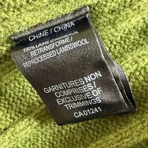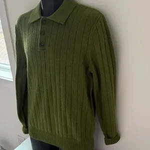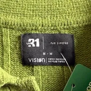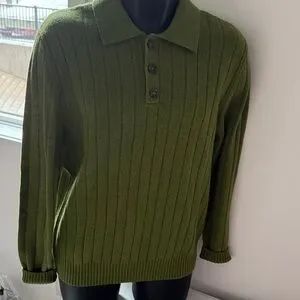 Eco-friendly olive knitwear by Simons. Crafted from recycled lambswool.
