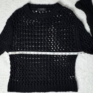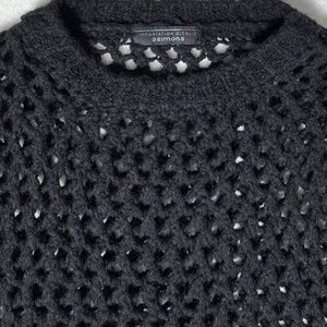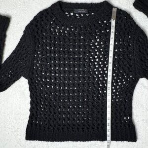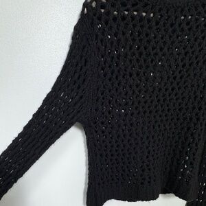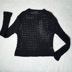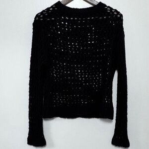 Simons Open Knit Mesh Crew Neck Sweater Black Women's Size XS/S